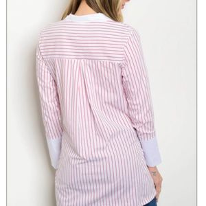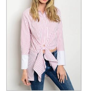 Beautiful long sleeve waist tie pinstriped poplin shirt.