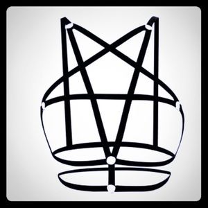 Go ahead, you're not asking permission because you're not a basic bish.👀🤭 Be dangerously revealing, sexy AF annnd antagonistic all at the same time in this all black, cleavage enhancing, pentagram bandage/cage bra. Polyester, under-wire free.