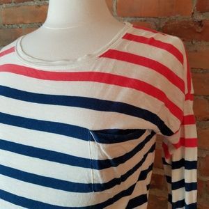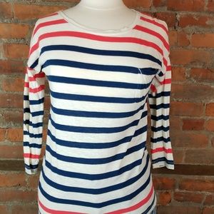 Madewell Womens Knit Top Nautical Stripes IvoryNavyBlueRed 3/4 Sleeves