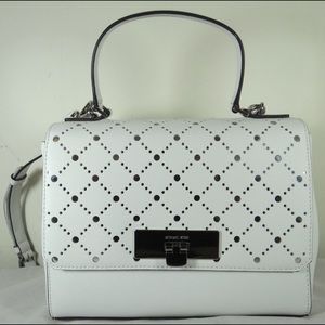 Michael Kors “Callie” white perforated leather cross body/ handbag.