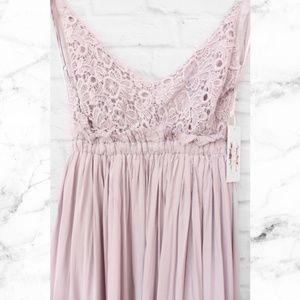 Tags: bridesmaids dress date night crochet lace open back ruffled waist fringed hem boho bohemian dresses long light purple lavender special occasion formal spring summer beach