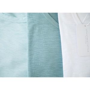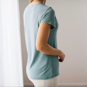 Restocked! Wardrobe must. This perfect t shirt is incredibly soft, comfortable and flattering. Color is a gorgeous ocean teal, a blue green. Crew neck. High quality and well made, Modal and Cotton slub material, comparable to designer tees. Easy, casual fit.