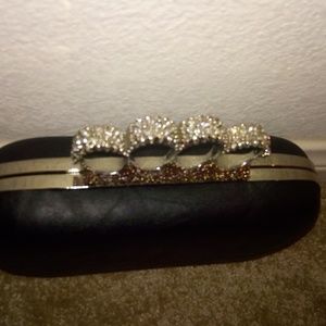 Beautiful. Rhinestones, Cocktail finger held purse. Black, never used with chain strap. Unique. Sizing upon request.