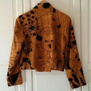 Women's cotton jacket with animal faces embroidered in the fabric. Fabric is like linen, but is 100% cotton.
