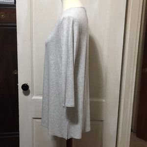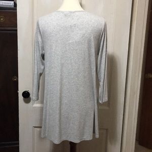 This gray tunic top is sooo soft, has a crisscross front neckline and 3/4 length sleeves. There is a 5” slit on each side at the hips. Pit to pit is 19 1/2” and shoulder to hem is 29”. #15 30🌺🌺🌺30