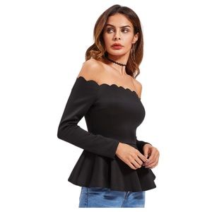 ❤️ Black Scalloped Stretch Off The Shoulder Top