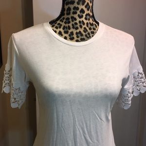 Super cute slight Cropped shirt by Topshop white with white lace appliqué