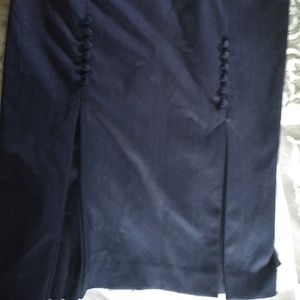 Sleek flirty skirt gives you a professional look with a twist. Button detail down the back gives a twenties nod to professional attire the body slimming skirt allows you to comfortably walk with built in pleats instead of plain slits. I love this skirt if it's in your size its a great addition to any wardrobe