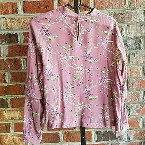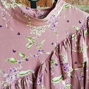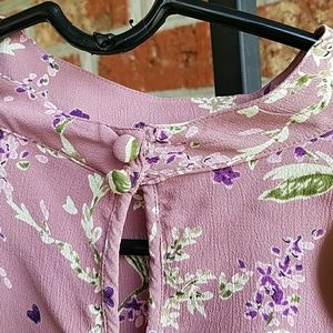 Pink floral ruffle top. Keyhole button back. Extra button included.