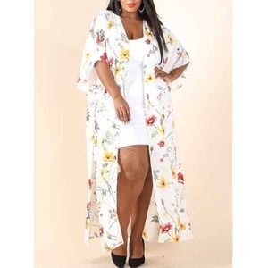 White Floral Kimono Cardigan Duster Maxi Tunic