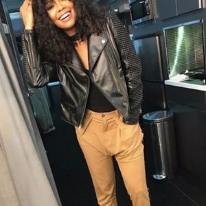 New York & Co Stylish Fashion Faux Leather Moto Jacket