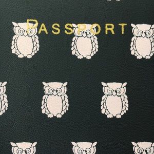 J. CREW Leather Passport Case, Navy Blue Pink Owls