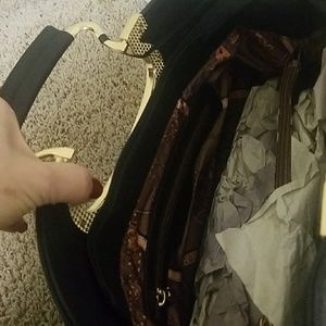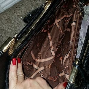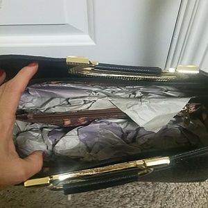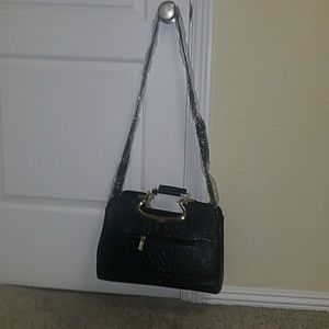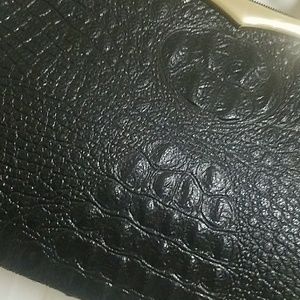 La Terre Fashion stachels black purse with gold. Very elegant bag. Brand new with tag. Never worn. Good quality black alligator skin faux leather purse.