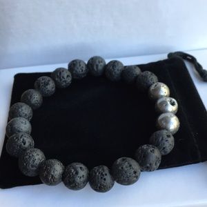 Silver (colored) Druzy Genuine Agate Beads, 10mm. Black lava stone beads, 10mm. Fits a 7 inch wrist medium snug. New, no tags. Comes with a storage pouch and box.