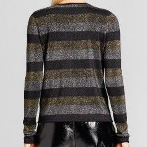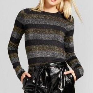 New WWW Metallic Stripe Crew Pullover Sweater [D2]