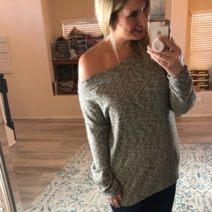 Super soft and cozy light taupe color marble top. This can be worn on or off shoulder and true to size with a relaxed fit. 67% Rayon 28% Polyester and 5% Spandex very soft and stretchy. Made in USA large bust 22 and length approx 29” pairs great with skinny jeans and booties and a necklace or with leggings from my boutique.