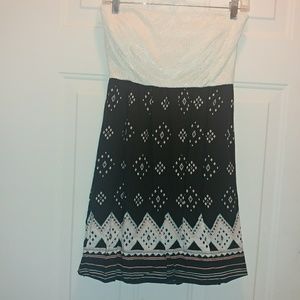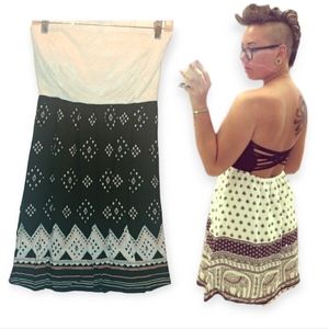 SFS • NWT • Empyre • White Aztec Print Strapless Srrappy Back Dress Large Black
