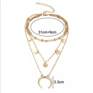Beautiful Bohemian Gypsy style Gold Multi Layered choker/necklace. Featuring coin accents and half crescent moon pendant. Super trendy, pretty and will go with a lot of different outfits! Dainty & Light in weight. Limited quantities! Measurements shown in last photo. Brand New in packaging.