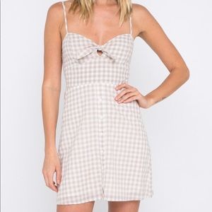 LAST ONE Sahara Gingham Print Tie Dress in Sand