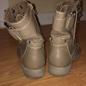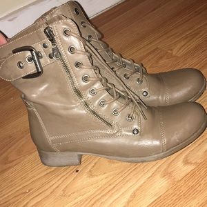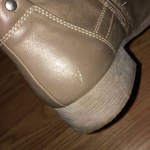Slightly used. Has a small scratch on back. Size 6.5 Guess boots. Tan. Very cute boots