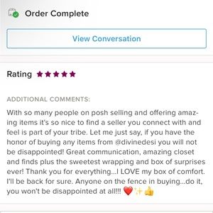 PLEASE RESEARCH any potential seller! SCAM WARNING!! Look to see if items are taken in the same background, etc. If you are new to Poshmark, this information is under the ABOUT tab. See how long they have been in the Poshmark community. Scroll down further to view love notes. This will tell you valuable information about the seller and how important customer service is to them. This also tells you how much your rating and comments are valued by the seller and how important it is to leave one as a buyer. Thanks to my awesome buyers, whom I greatly appreciate, you can buy with confidence from me!! 🤩💗🤩 I’m grateful to each and every one of you and will always strive to give you my best!! With the exception shows, Every purchase comes beautifully wrapped like this or in a plastic storage bag, a thank you note or card, and always included a free gift if your purchase is $40 or more. I usually ship in 2 days or less. I am a top rated seller, mentor, and ambassador II! All items I sell are new with tags or are in excellent used condition. I only sell items that I love myself. Buy with confidence when you shop with me 🤩🤩 In addition, I don’t like being pressured when shopping so I won’t do it to you. I will ask if you have any questions. I will only bundle items you have liked, unless you ask me to show you something. I will send you a nice offer on your bundle. PayPal allows for payments. Questions about anything? Ask away? I’m a mentor and and a stylist too!!! 🤩 Happy Poshing 🤩