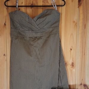 Pinstripe black and tan with heart shaped top. Zipper back. EUC