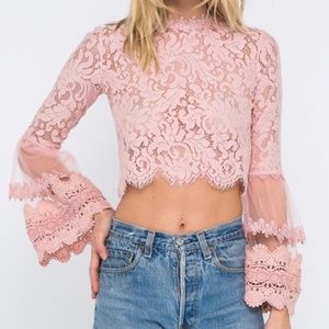Blush Lace Crop Top, Bell Sleeve