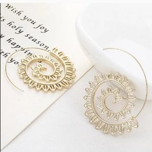 PAIR. Available in silver or gold. These earrings are stunning! The spiral design slides into pierced ear and can be gently bent for easier insertion and to fit ear. Approximately 1 3/8" hanging length and width. First picture is of similar item but not exact. I wanted to show it modeled. See all pics!