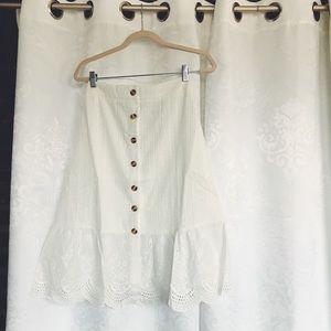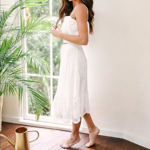 The Lilah Skirt is part of a 2 piece set! Love this one, so cute and super flattering! The Lilah Skirt features a midi silhouette, front button detail, eyelet fabrication, and a full lining.