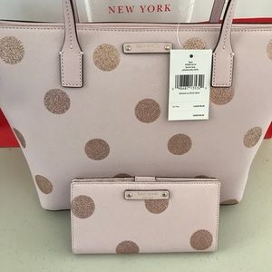 NWT KATE SPADE HANI HAVEN LANE PINK POLKA SET BAG