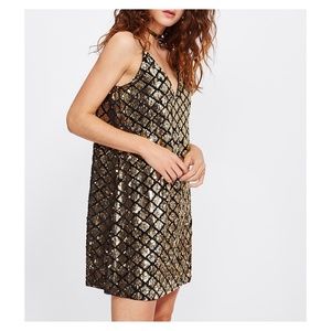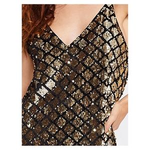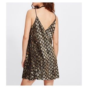 Gold Black V Neck Spaghetti Straps Cami Slip Dress