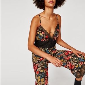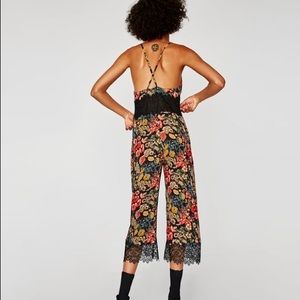 NWT Zara Floral Lace Cropped Flowing Jumpsuit