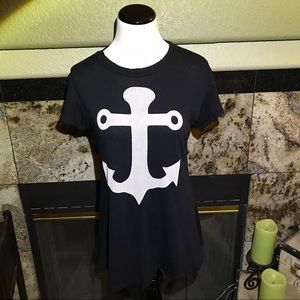 Black Wildfox Tee with subtle distressed collar.Large anchor 💯Cotton made in USA EUC