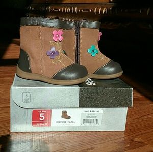 Absolutely adorable BRAND NEW with box, See Kai Run baby girls toddler size 5. Brown boots with pink, purple and teal flowers. SO cute, excellent See Kai run quality.