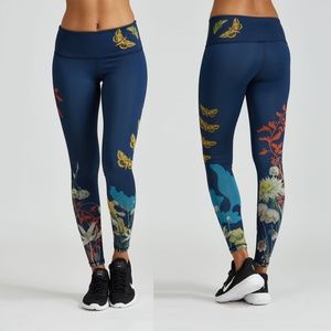 Noli Yoga Women Athletic Leggings, Navy Enchanted