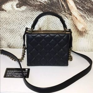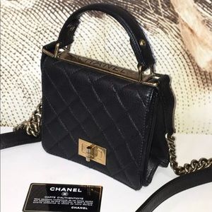 Square Trendy Bag in Caviar Leather. Rare and Impossible to Find. Limited Edition Square TRENDY Top Handle Bag in Black Caviar Leather, Mademoiselle Turn Lock and Antique Hardware.