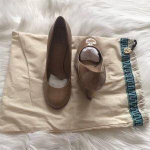 NWOT Tory Burch Astoria nude wedges in excellent condition. Size 6.5 with a 3.5inch wedge. Sold without box, but sold with original dust bag.