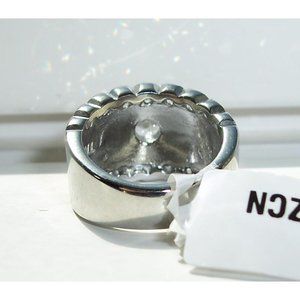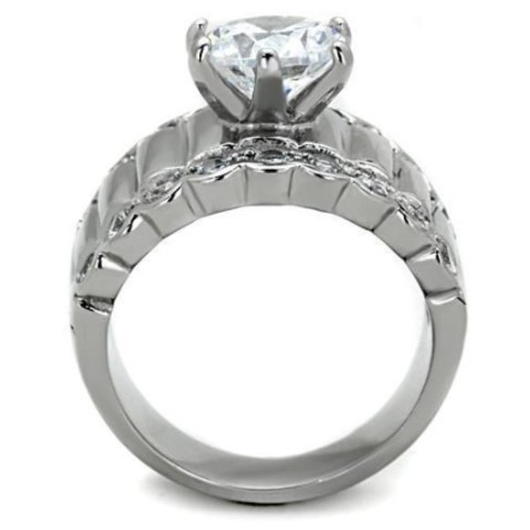STAINLESS STEEL Round Cut Cubic Zirconia Wide Band Ring