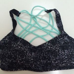 In great condition, no flaws. Gorgeous looped, criss-crossed back straps let you twist with ease. With built-in pockets for removable cups