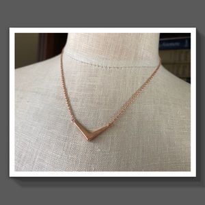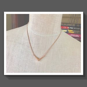 Measures 16โ with 1โ extension. Is rose gold plated and is so on trend today. Called a V Necklace. I show pics with 2 different lights. ๐๐