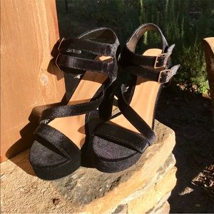 NWT VELVET PLATFORM SANDAL. I thought I had picked up a 7 😫IT’S an 8!! I LOVE THIS SHOE! SOOO wish she was my size!! Sick over it! I’m searching still for my size lol!