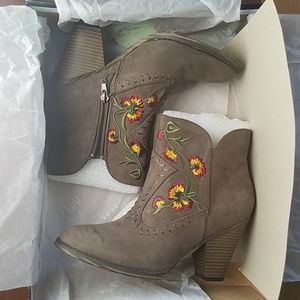 πHPππ€NWT Never been worn floral embroidered suede Western style boots. Taupe color. Didn't fit me when I bought them, but didn't take them back on time. Beautiful boots that I wish I could wear, but hoping someone else can rock them! Comes with all original packaging. Let me know if you have any questions below!