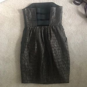 Mini dress great for a night out. The dress is a Crocodile print with black strap and zipper details! Does have pockets!
