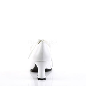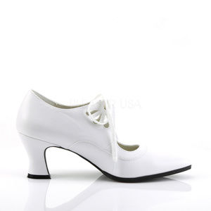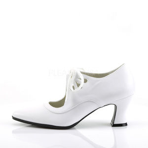 2 3/4" High Heel Pointy Toe Victorian Lace Up Shoes. Vegan White Faux Leather.