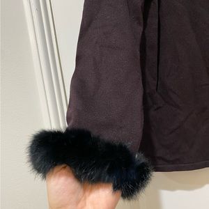 Due Per Due Black and Brown long sleeve faux fur around the neck collar and wrist sleeves .