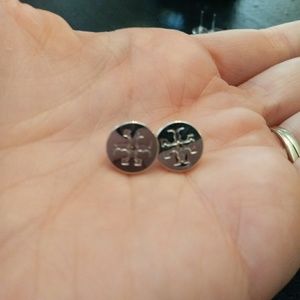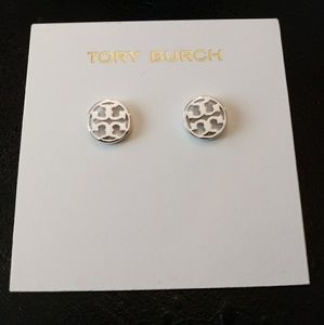 Tory Burch NWOT Silver Circle Logo Stud Earrings