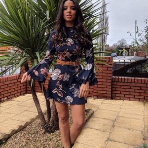 Floral dress with bell sleeves and high neck. There are ruffles at the end of the sleeves. Really adorable dress that can be dressed up or down. This dress is sold out in most sizes at ASOS.