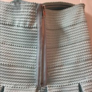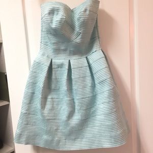 Gianni Bini strapless sweetheart neck cocktail dress. Gorgeous blue color! I would describe it as aquamarine. ๐ fitted at bust. Skirt flounces out. Fabric is similar to the Herve Ledger bandage dress fabric- so extremely flattering and excellent quality. Worn once to a wedding - EUC. Fabric is 50% poly/50% spandex. No need for spanx with this dress! Please comment with any questions! ๐โจ๐โจ๐โจ๐ ๐ค