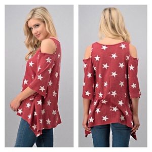 Burgundy Cold Shoulder Star Print Top.