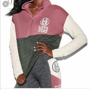 This pink,white, and grey half zip has a pink symbol on the left chest and writing on the back. No signs of wear!! Thanks for checking out my product and make sure to check out other products in my closet! I am willing to accept reasonable offers!!